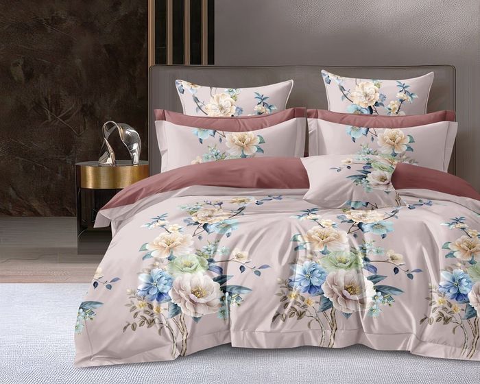 Комплект постельного белья изготовлен из 100% хлопковой ткани высокой плотности переплетения Сатин и безукоризненным пошивом.
